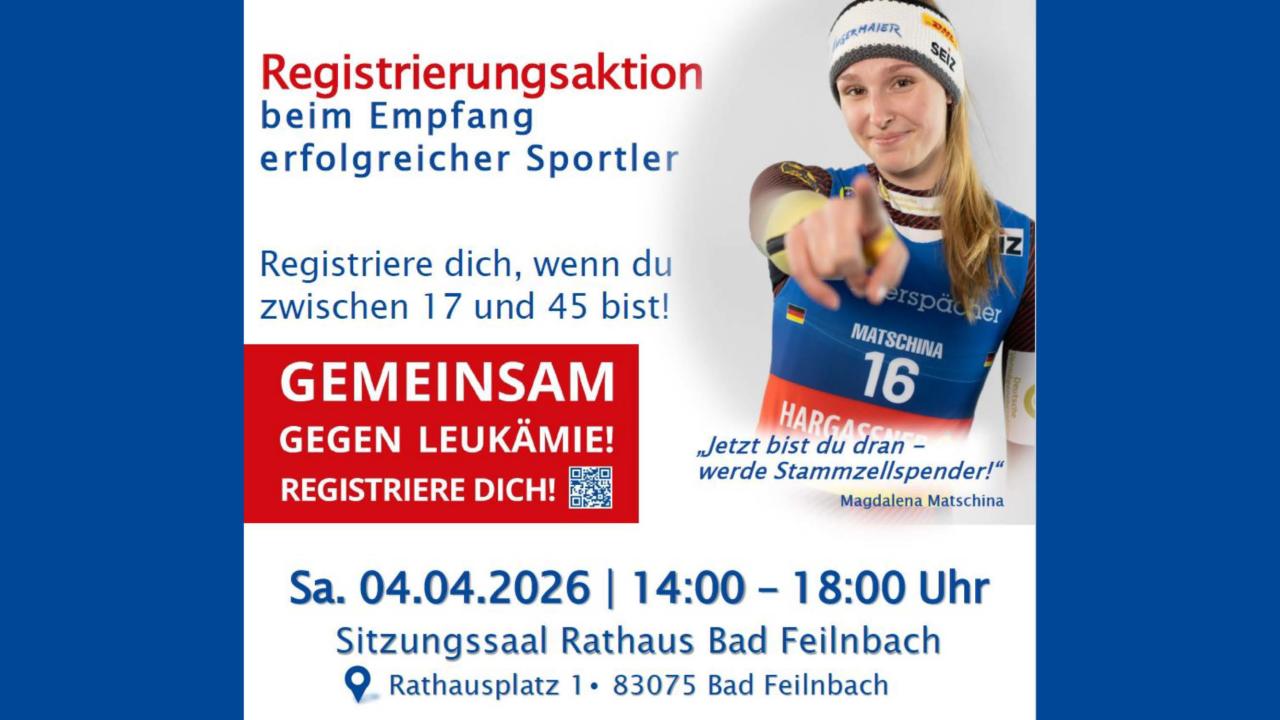Parallel zur Ehrung der Sportler findet am 04.04.2026 im Sitzungssaal des Rathauses von 14.00 bis 18.00 Uhr eine Registrierungsaktion für die Stammzellspende statt.
