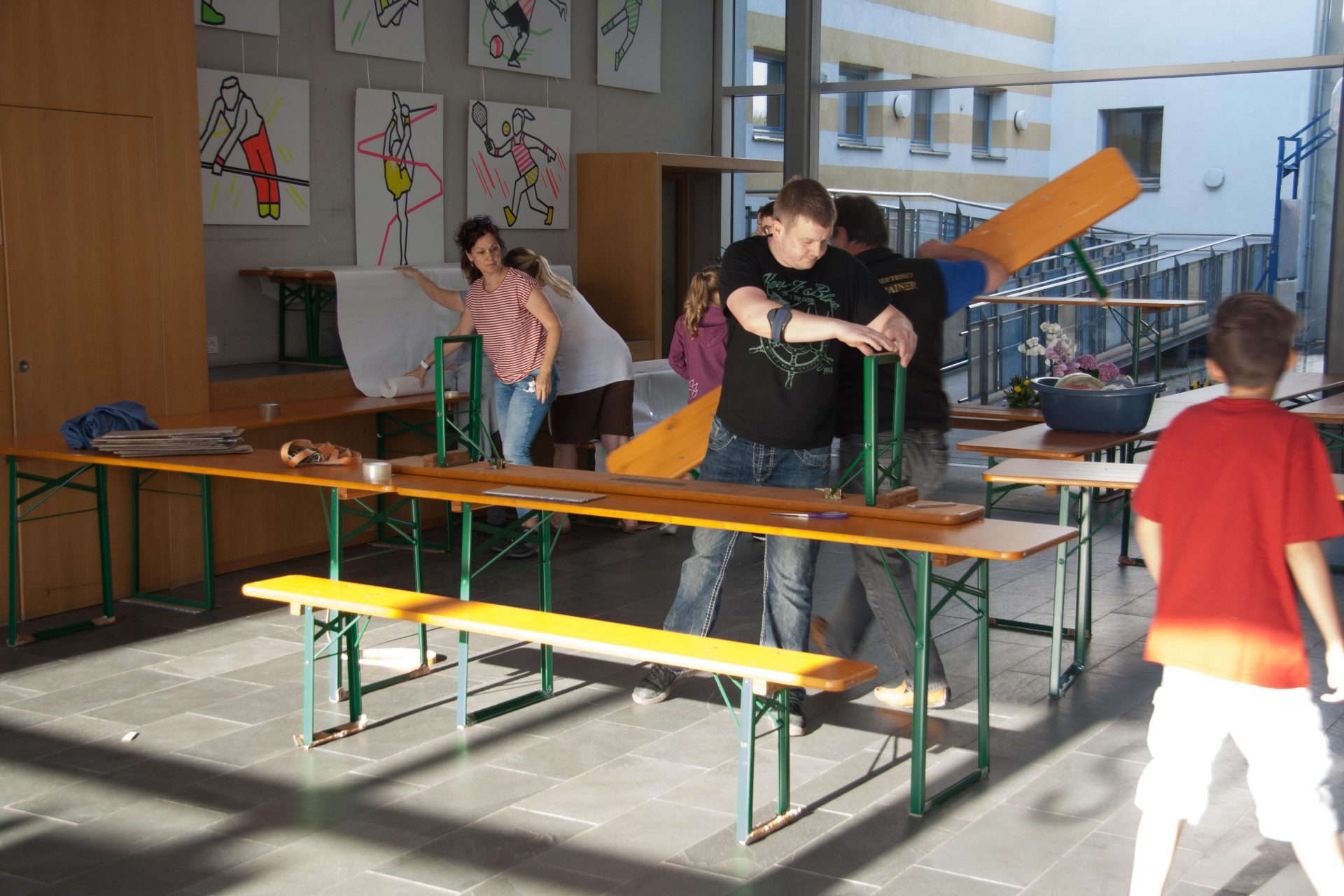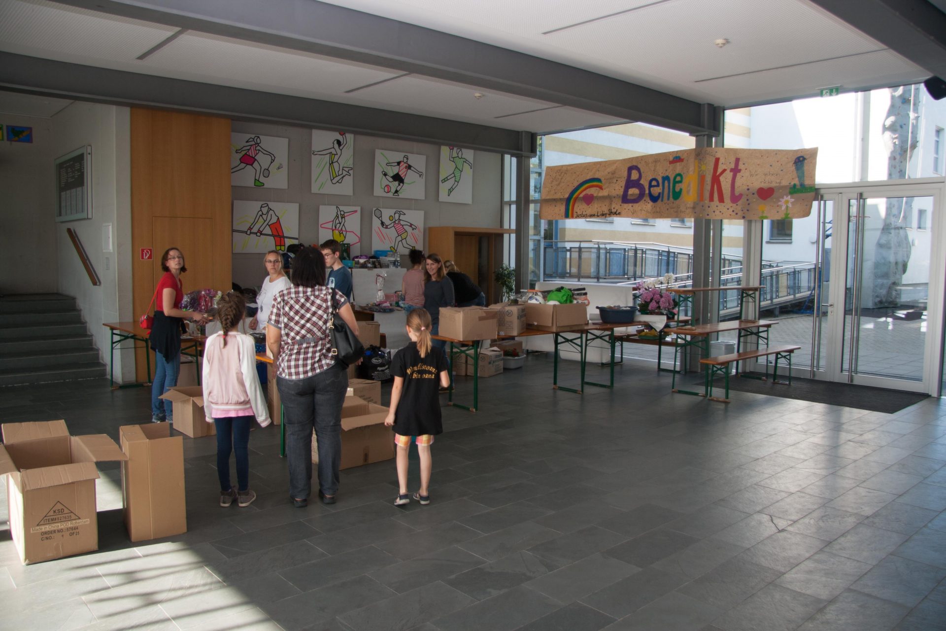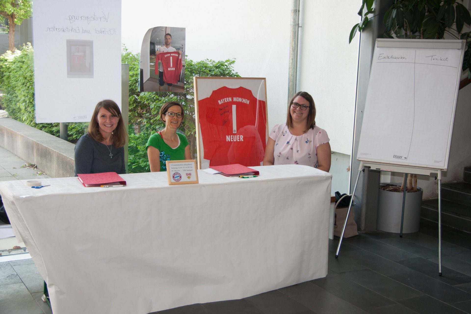 Am Samstag, den 28. April stand schon alles parat, als das Team der Stiftung AKB um ca. 9.00 Uhr in der Früh in Bruckmühl ankam. Der Aufbau war perfekt strukturiert. Die ersten 100 Kuchen waren schon angeliefert worden, Wurst- und Käsesemmeln wurden gerade belegt, die Eltern der Justus-von-Liebig-Schule bauten die Tombola auf und planten eifrig die Versteigerung des Hauptpreises – das Trikot von Manuel Neuer mit persönlicher Widmung!