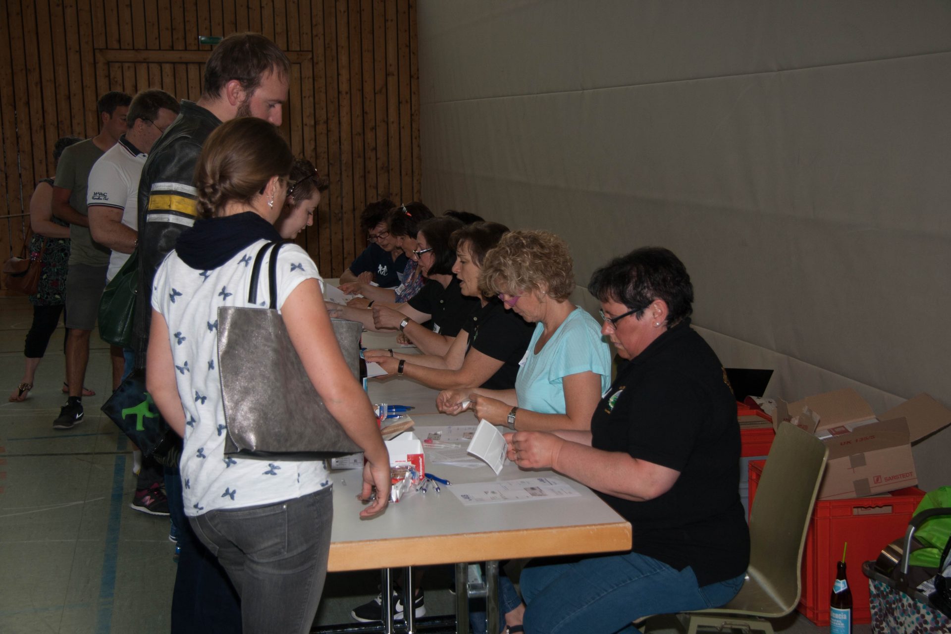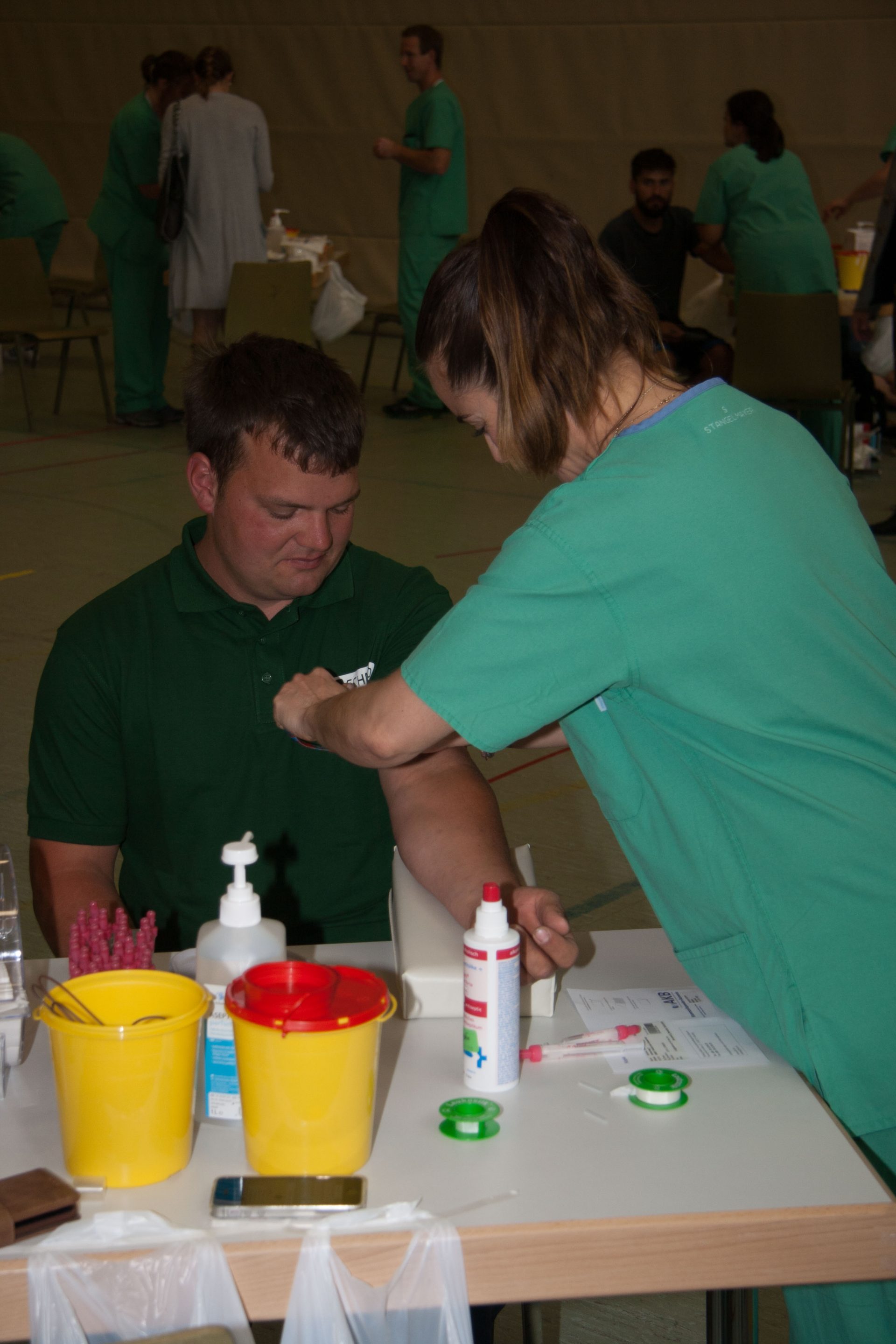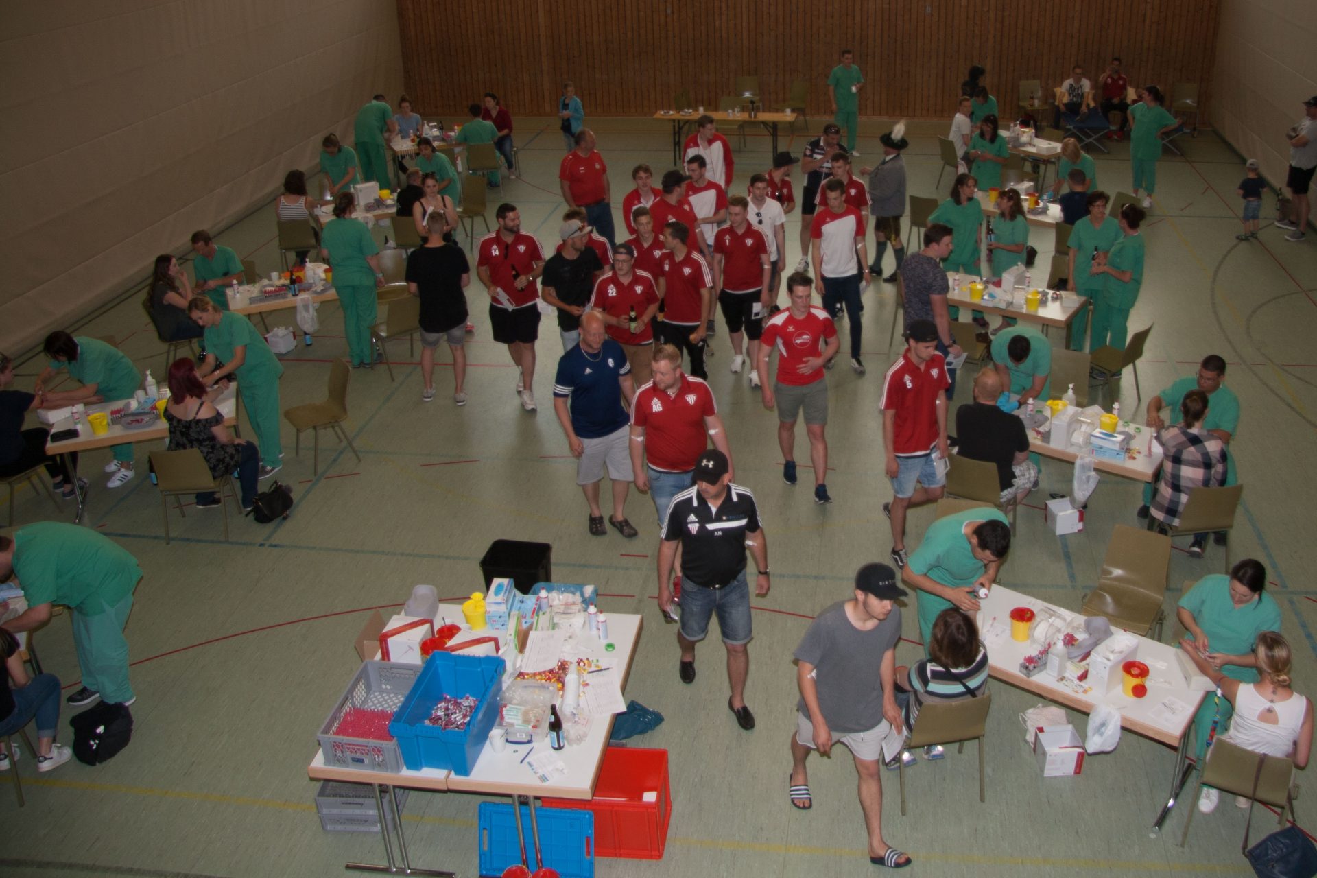Schon um 10.30 Uhr standen die ersten Freiwilligen an den Infoständen, die sich für Benedikt und viele andere schwerkranke Patienten registrieren lassen wollten. Um 10.40 Uhr konnte gestartet werden und um 11.00 Uhr waren schon die ersten 70 potenziellen Spender registriert. Der Strom der Freiwilligen ebbte nur um die Mittagszeit kurz ab, um dann aber am Nachmittag wieder erneut aufzublühen. Mit 14 Registrierungsstationen und 20 Blutabnahmeplätzen wurde dem Ansturm aber standgehalten (wie die Filme unterstreichen), so dass es zu keinen nennenswerten Wartezeiten kam und der reibungslose Ablauf permanent sichergestellt werden konnte.