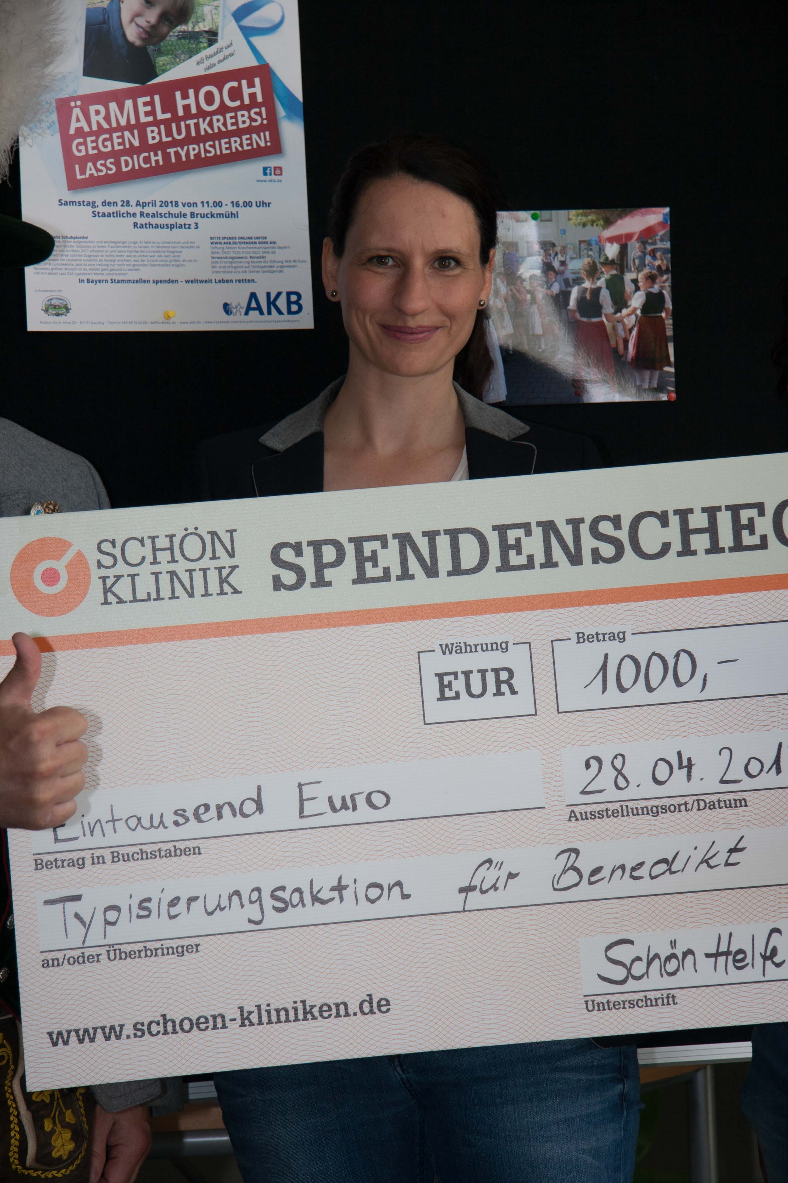 So konnten am Ende der Typisierungsaktion 1377 neue potenzielle Stammzellspender notiert werden und knapp 22.000,- EURO an Barspenden wurden im Nachgang gezählt und verzeichnet. Mit dieser grandiosen Spendensumme und den schon eingegangenen Spenden auf dem Konto haben es die Bruckmühler geschafft die Typisierungsaktion zu finanzieren. Mit über 56.000,- EURO auf dem Konto sind alle Neuregistrierungen aus der Aktion für Benedikt finanziert. Dennoch sind Geldspenden auch weiterhin für die Stiftung AKB wichtig, weil viele Neuregistrierungen über die Homepage oder den Blutspendedienst gänzlich unfinanziert sind.