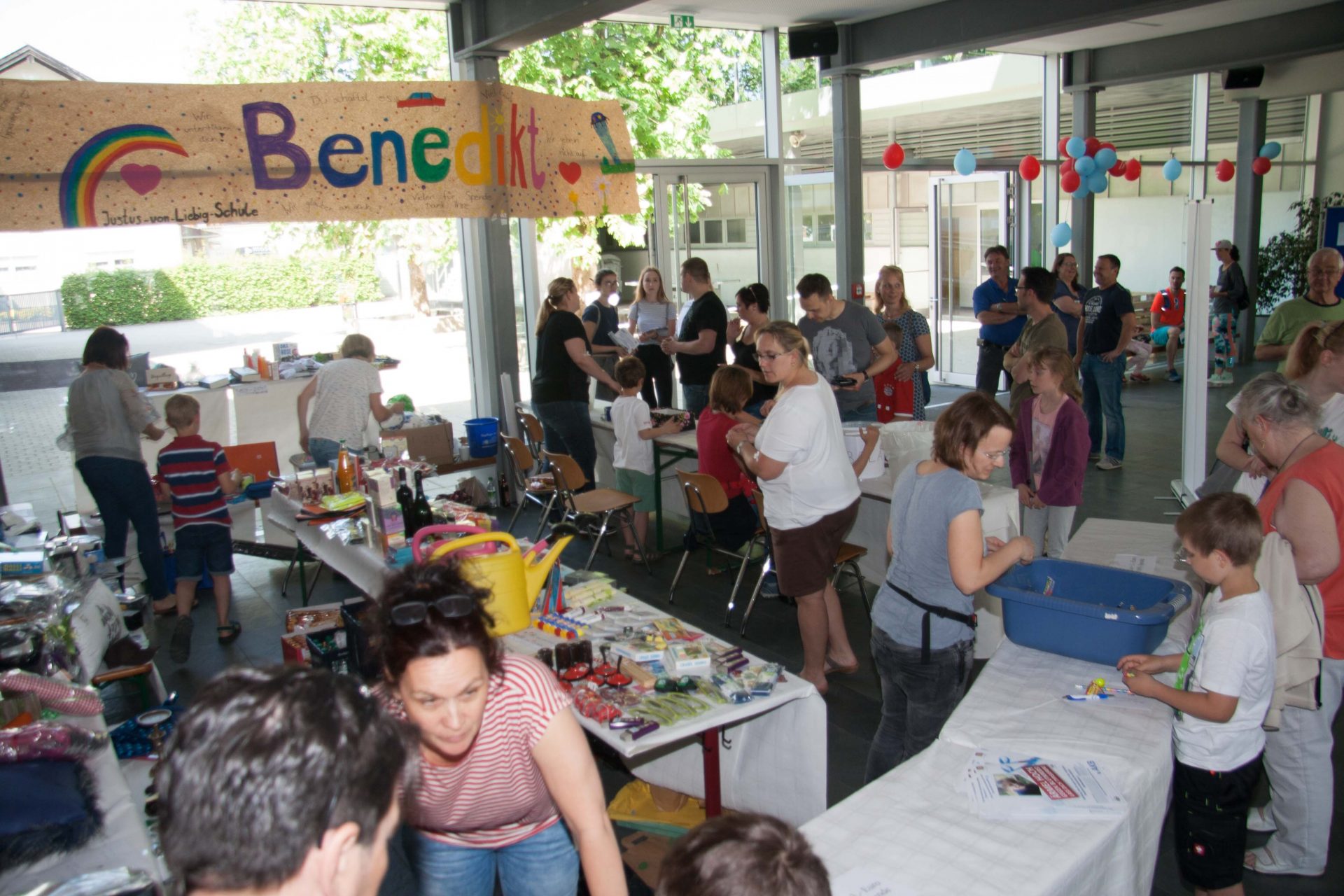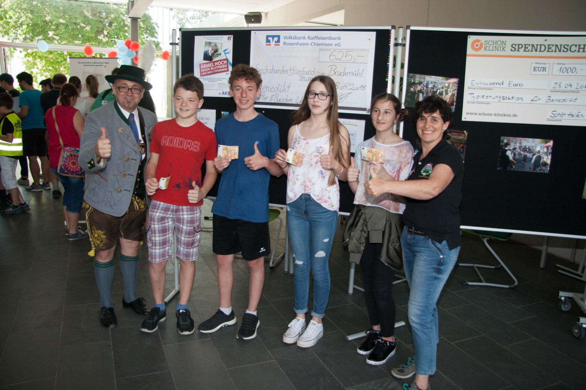 Nur um ein paar wenige, fantastische Beispiele zu nennen: Das Trikot von Manuel Neuer wurde für sage und schreibe 650 EURO versteigert. Zwei Karten für das letzte Bundesligaspiel der Saison brachten 250 EURO und ein eigens für Benedikt gebackener Kuchen, der versteigert wurde, ging für 70 EURO an einen wohlmeinenden Spender. Über die Tombola mit über 1000 Preisen kamen sagenhafte 5265 EURO zusammen.