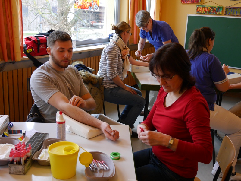 Die Höger ließen sich das nicht zweimal sagen – endlich konnten sie sich bei ihrer Leni revanchieren! Innerhalb von nur 3 Wochen organisierten sie gemeinsam mit der Stiftung Aktion Knochenmarkspende Bayern (AKB) eine Typisierungsaktion, backten dafür ganze 158 Kuchen und konnten am Ende des Tages auf ein stolzes Ergebnis blicken: Sagenhafte 688 neue potenzielle Spender konnten die Mitarbeiter der Stiftung AKB mit einem ganzen Heer an Helfern aufnehmen! Manuela Ortmann von der Stiftung AKB, welche die Aktion organisiert und betreut hatte, war überwältigt: “Wir finden nicht immer eine solch top organisierte Veranstaltung mit so qualifizierten Helfern vor.” Auch die Zahl 688 hat Ortmann ein wenig überrascht: “Dass wirklich so viele auch sehr junge Menschen zur Typisierung kommen, damit haben wir nicht gerechnet. Das freut uns aber natürlich ganz ungemein.”