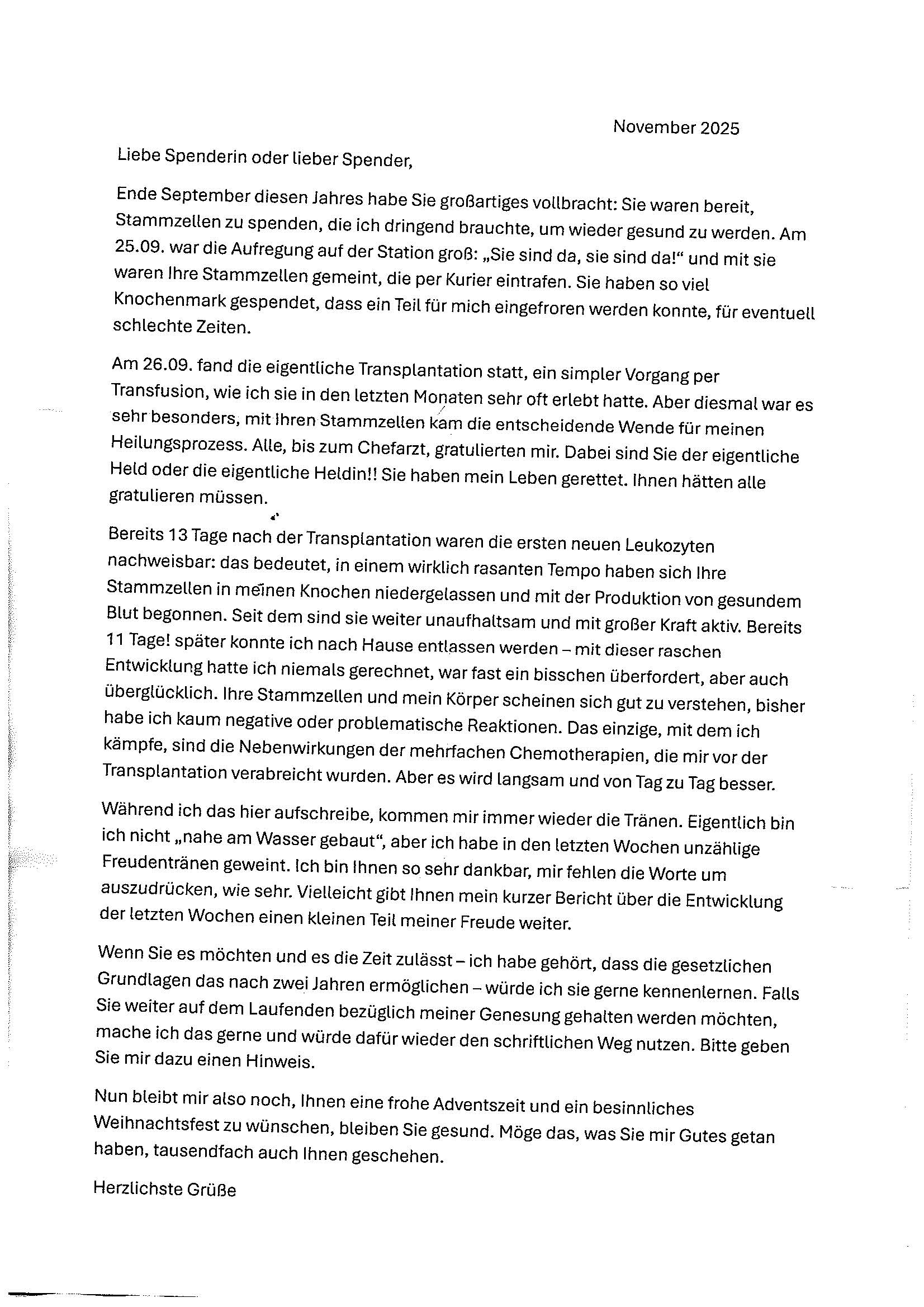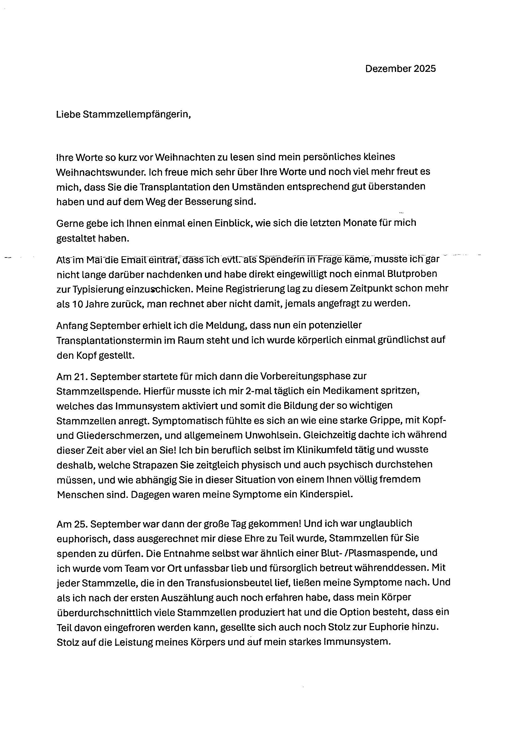 “… erfüllt von einer unsagbaren Dankbarkeit …” Briefwechsel einer Empfängerin mit ihrer Spenderin (11/12-2025)